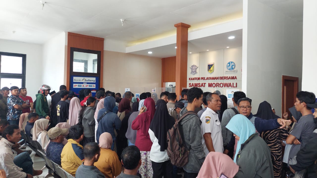Morowali – Ribuan warga Kabupaten Morowali dan sekitarnya memadati Kantor Samsat Morowali pada Rabu (14/5/2025) untuk memanfaatkan hari terakhir program pemutihan pajak kendaraan bermotor. Antusiasme warga terlihat sejak pagi hari, bahkan beberapa sudah hadir sejak pukul 06.00 WITA untuk mendapatkan nomor antrean.