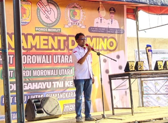 Ketua PORDI Morut, Abdul Halim, ST, S.Ars, menyampaikan bahwa dua tahun perjalanan PORDI Morut diwarnai capaian penting dengan peresmian lima Gardu (Keluarga Domino Unggul):
