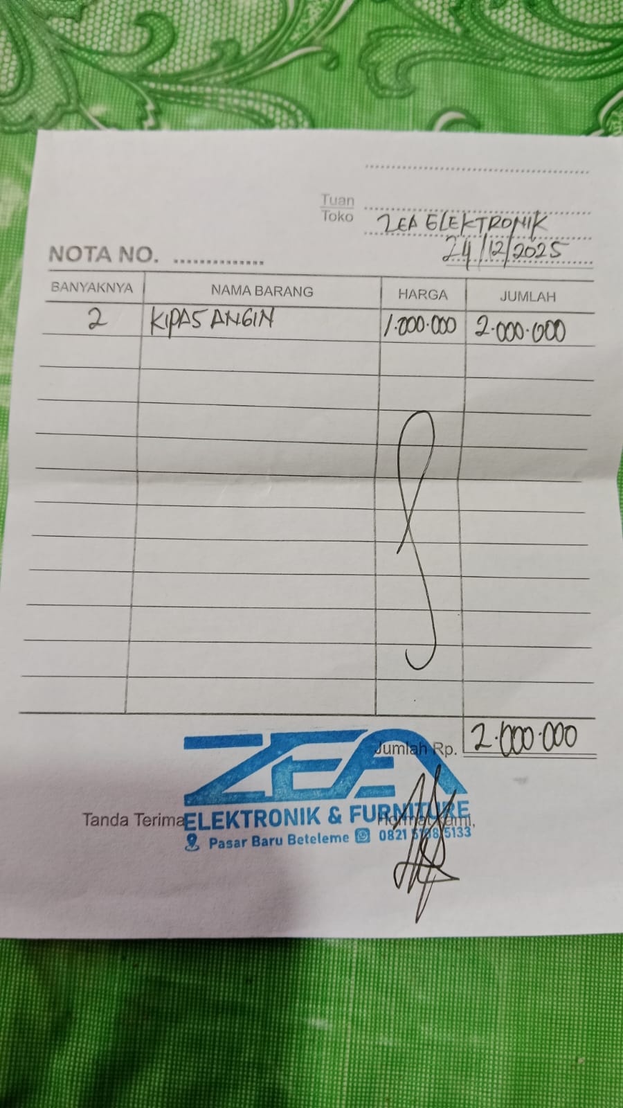 “Terima kasih atas bantuan kipas angin, kami sudah belanjakan berdasarkan bantuan yang diterima senilai 2 juta,”ungkapnya